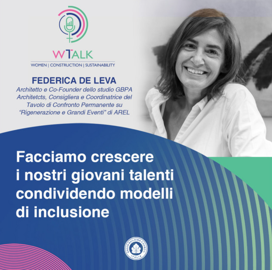 Federica De Leva, partner GBPA Architects, intervistata da WTALK, riflette sui temi Diversity, Equity e Inclusion sottolineando l’importanza di creare modelli di riferimento per le giovani professioniste e stimolare un cambiamento sistemico nell’ottica di promuovere i talenti femminili. WTALK è il podcast di Green Building Council Italia sviluppato nell’ambito del…