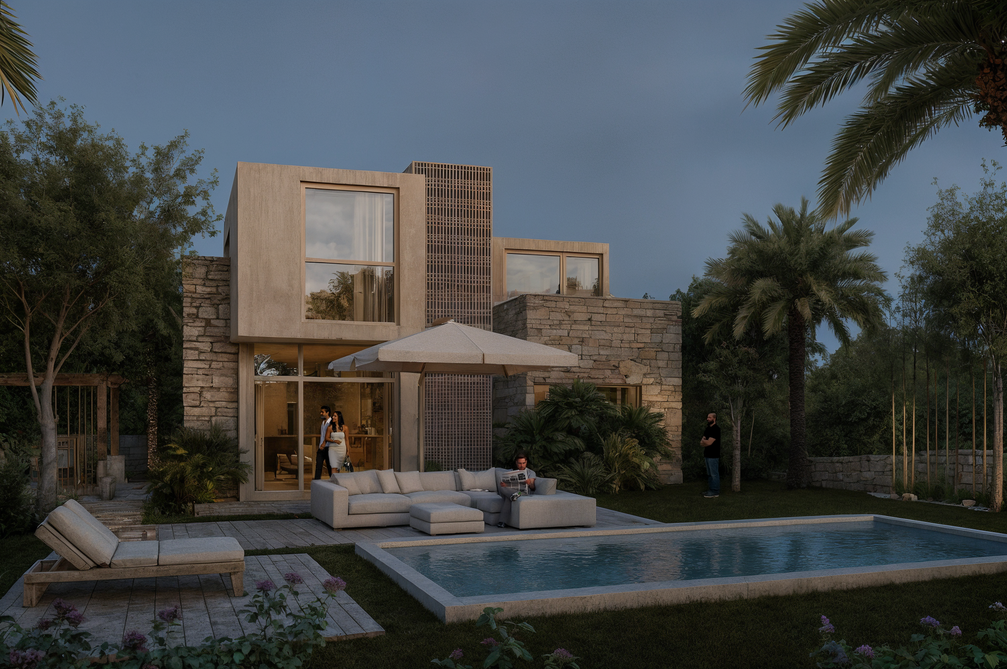 Alla luce di ciò, non poteva mancare l’acqua, elemento d’importanza primaria: il centro benessere è completato da un giardino esterno dotato di piscine e di un’area ludica con divertimenti acquatici e un club privato. Sia le torri che l’hotel poggiano su di un’unica piastra che unisce l’intero complesso. A differenza della SPA, che è un tutt’uno con la natura, questi edifici rendono visibile l’intervento dell’uomo, non mancando tuttavia di entrare in una relazione dinamica con l’ambiente che li ospita.